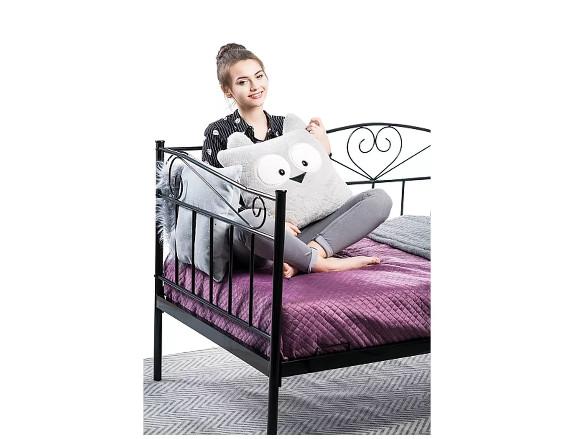 Voodi, materjal: metall, värvus: must. Komplekti kuulub jäigalt voodiraami külge kinnitatud metallprofiilidest raam. Madratsi suurus: 90x200cm (hind ilma madratsita).