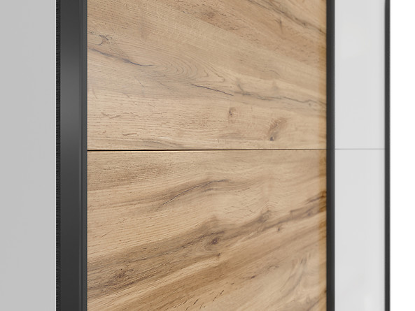 Liugustega riidekapp 153 cm TETRIX valge kõrgläige/tamm wotan