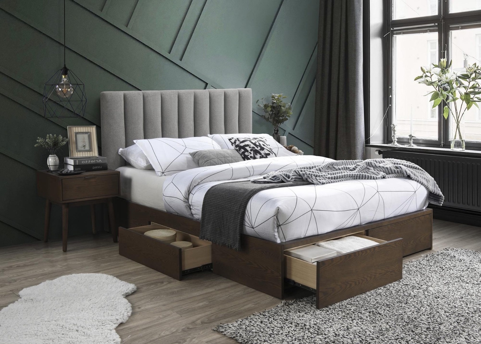 Voodi sahtlitega GORASHI 160 hall/pähkel