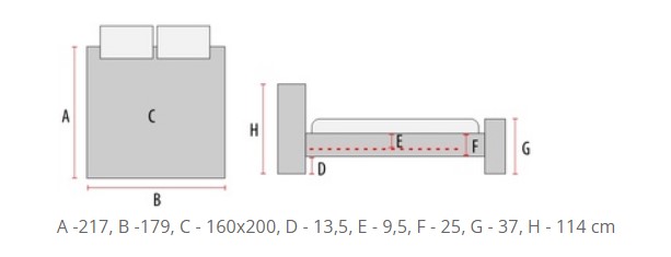 Voodi sahtlitega GRACE 160 hall