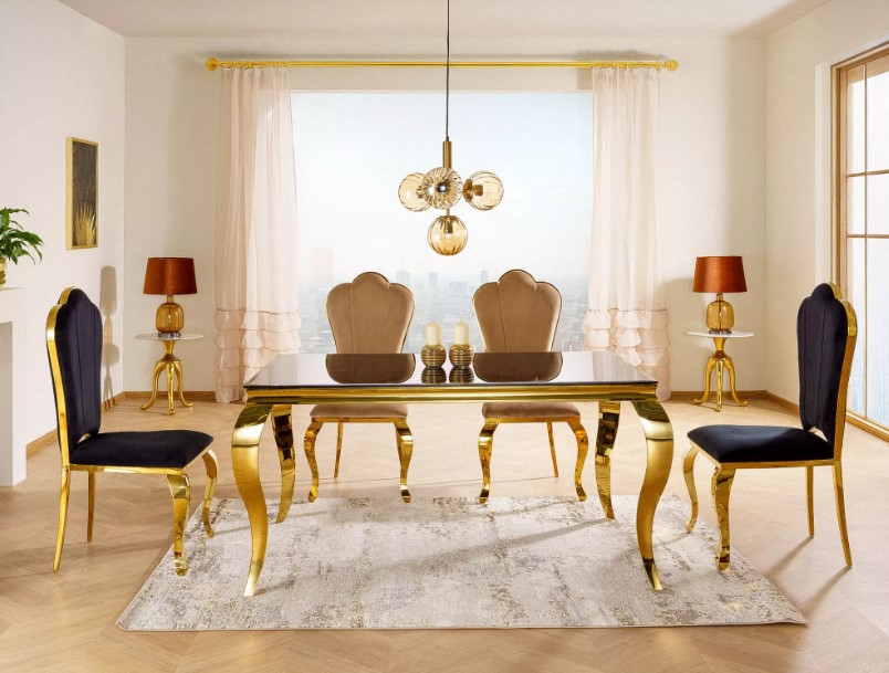 Söögilaud PRINCE must/kuldne 150X90cm