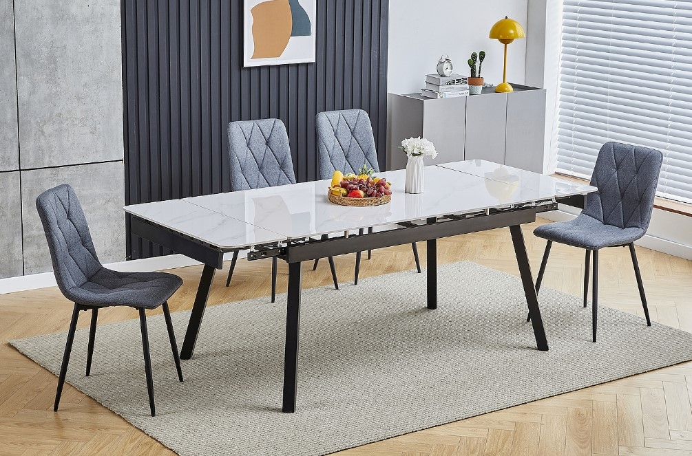 Pikendatav söögilaud JOHN valge marmor/must 120-180X85 cm