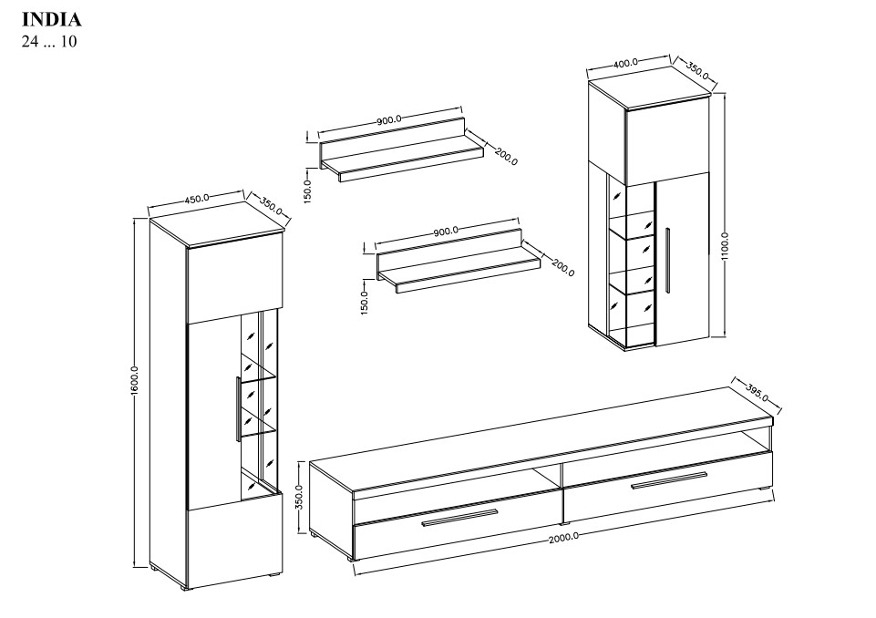 - Komplekti kuulub: 2 vitriini, 2 seinariiulit, tv-alus