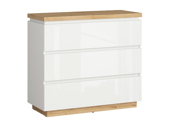 Kummut FORN 106 cm KOM3S valge kõrgläige/tamm delano