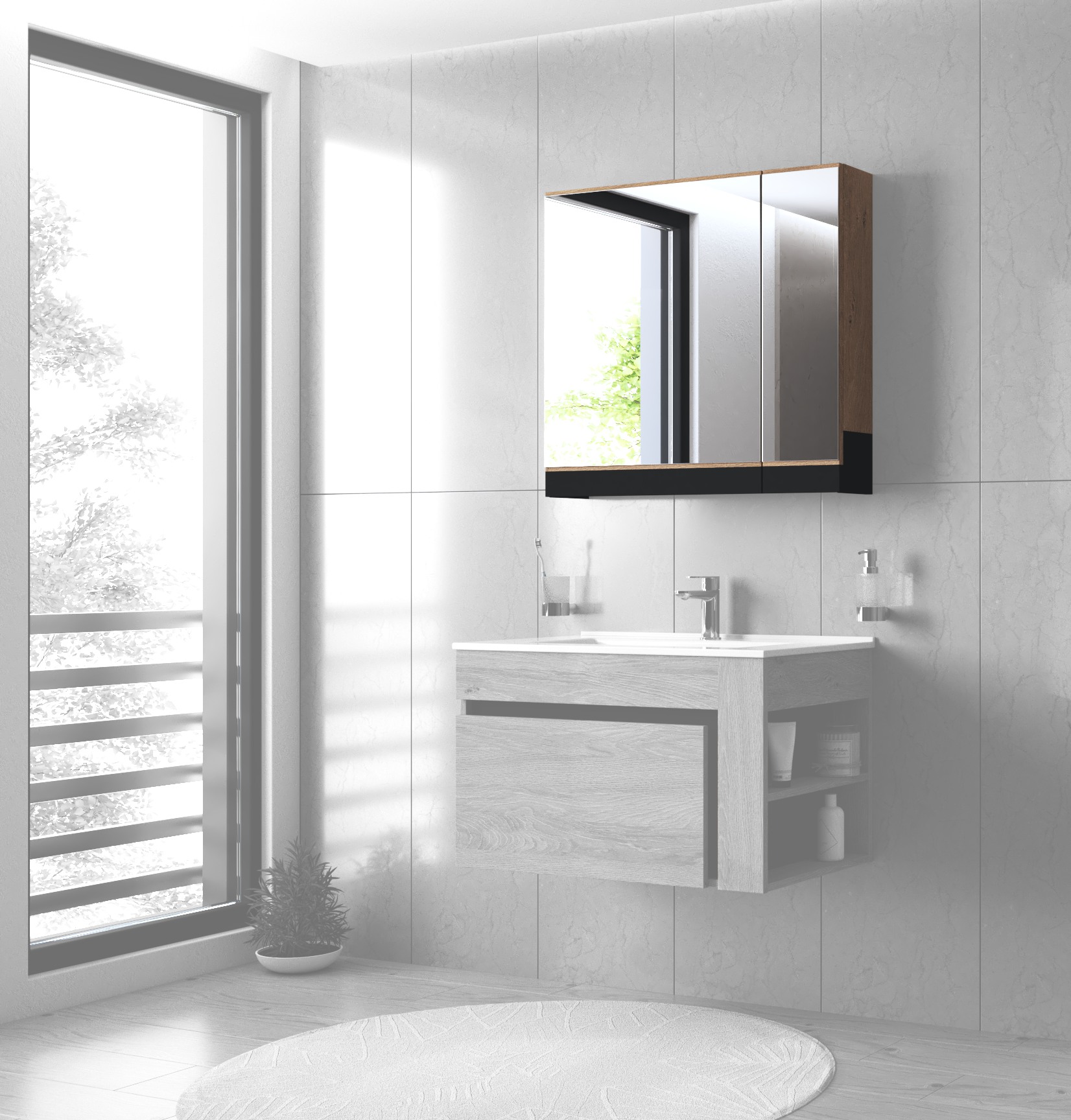 DOVER 80 vannitoa seinapeegel, hõbedane