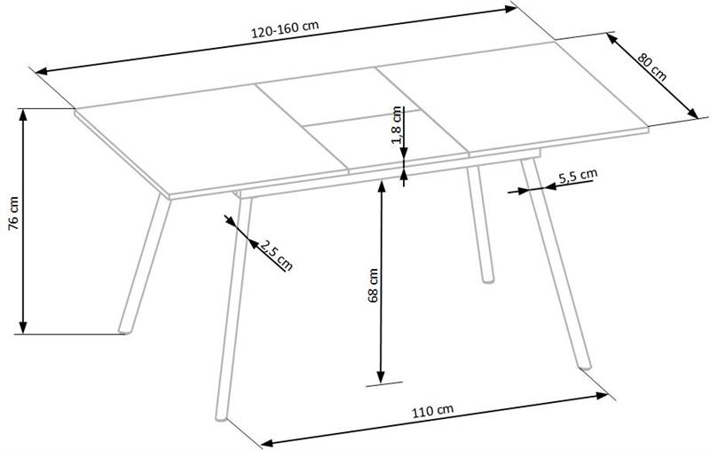 Раскладной обеденный стол ALBON 120-160 cm
