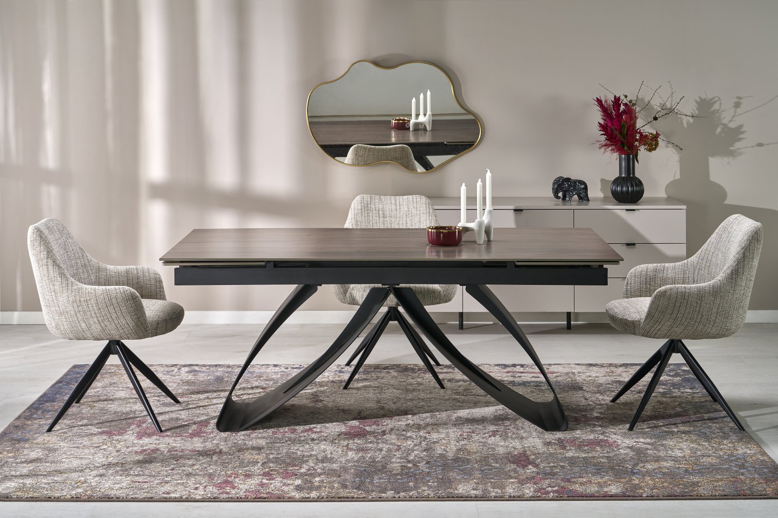 Раскладной обеденный стол HILARIO, орех / чёрный