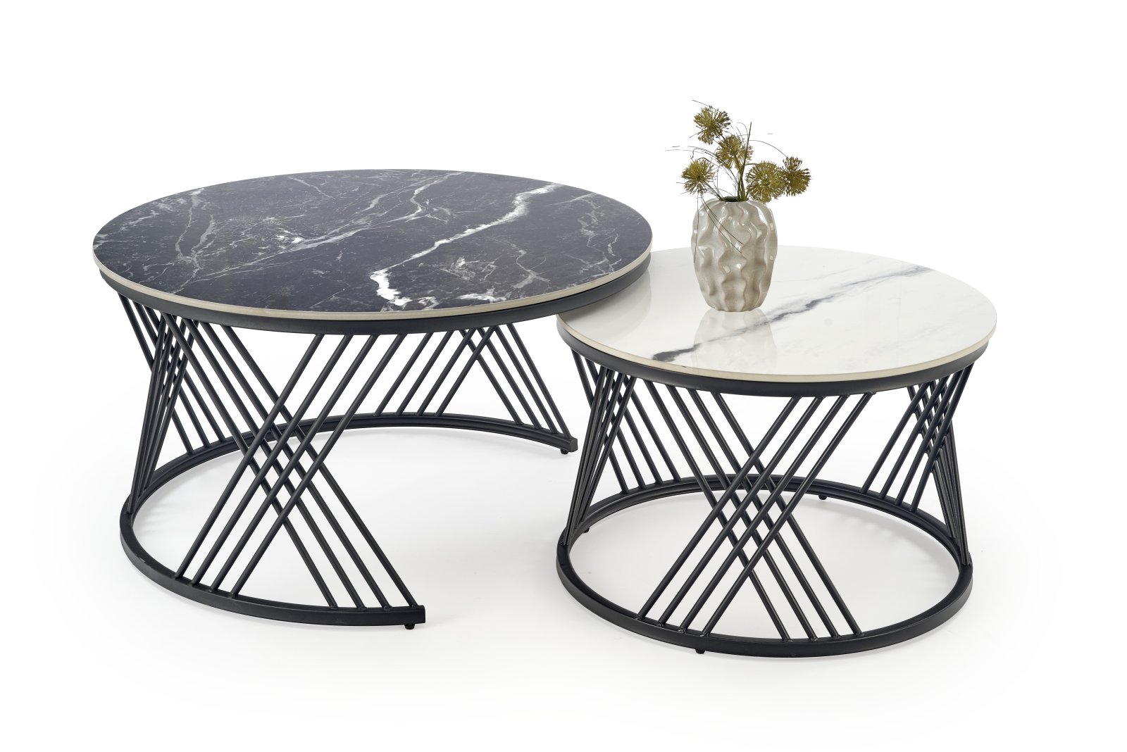 Набор из двух журнальных столиков FATIMA, белый мрамор / чёрный